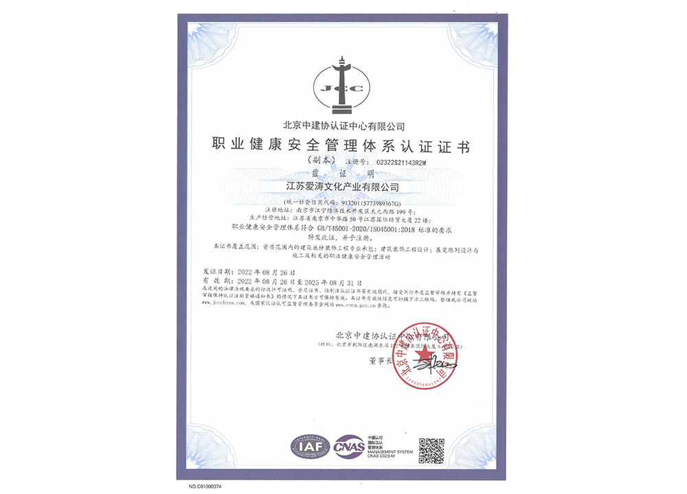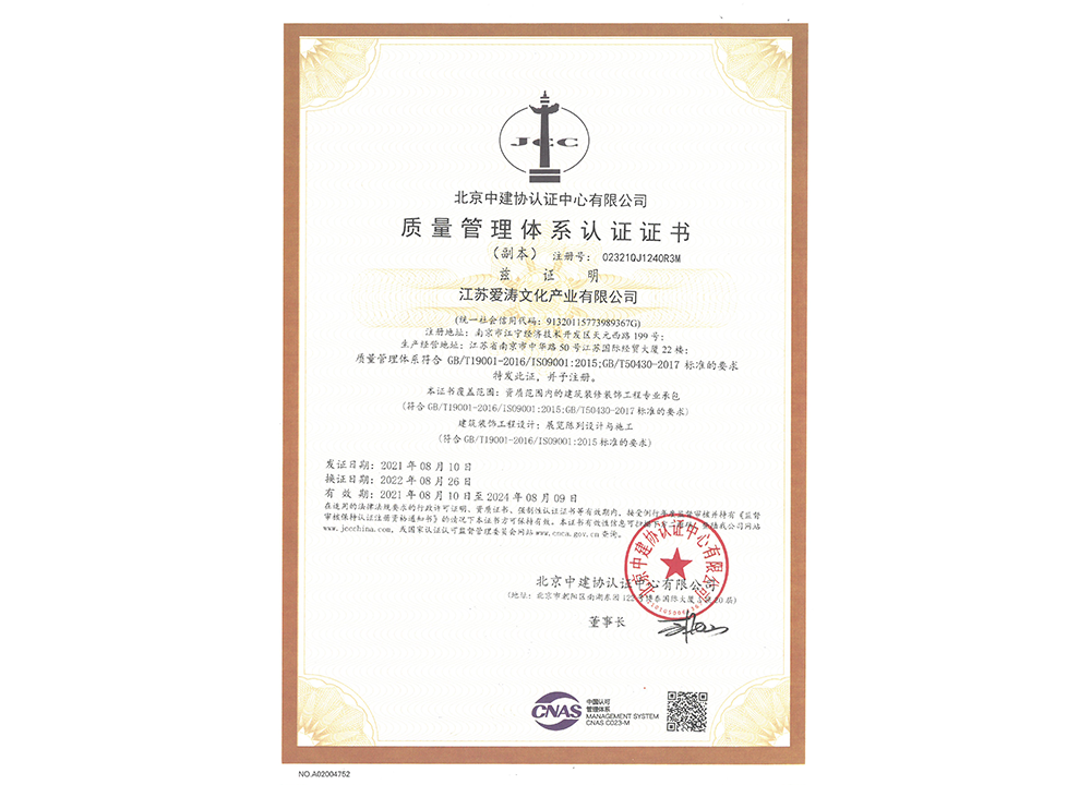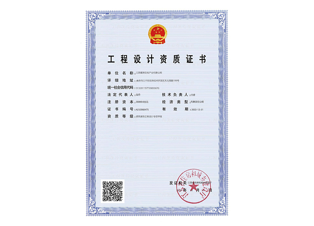 中國展覽館協會展覽陳列工程設計與施工一體化資質等級證書