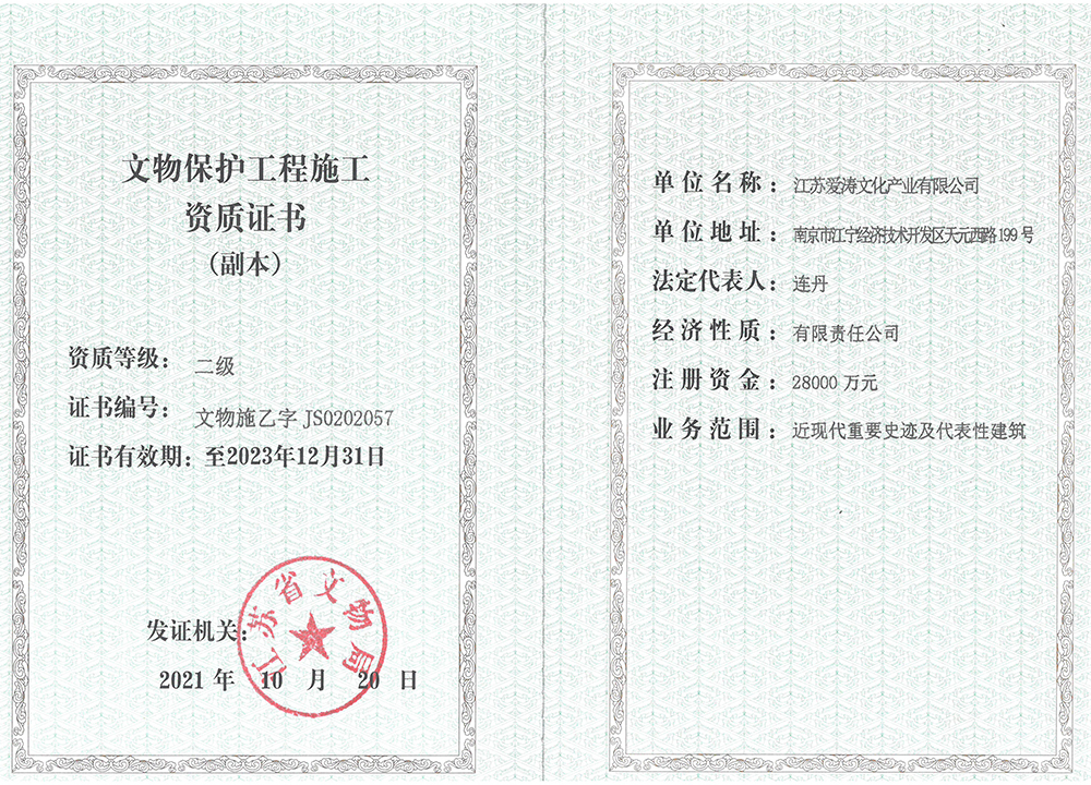 中國博物館協會博物館陳列展覽施工單位資質證書